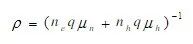 其中ne→電子濃度,nh→空穴濃度,μn→電子遷移率,μh→空穴遷移率,q→基本電荷量